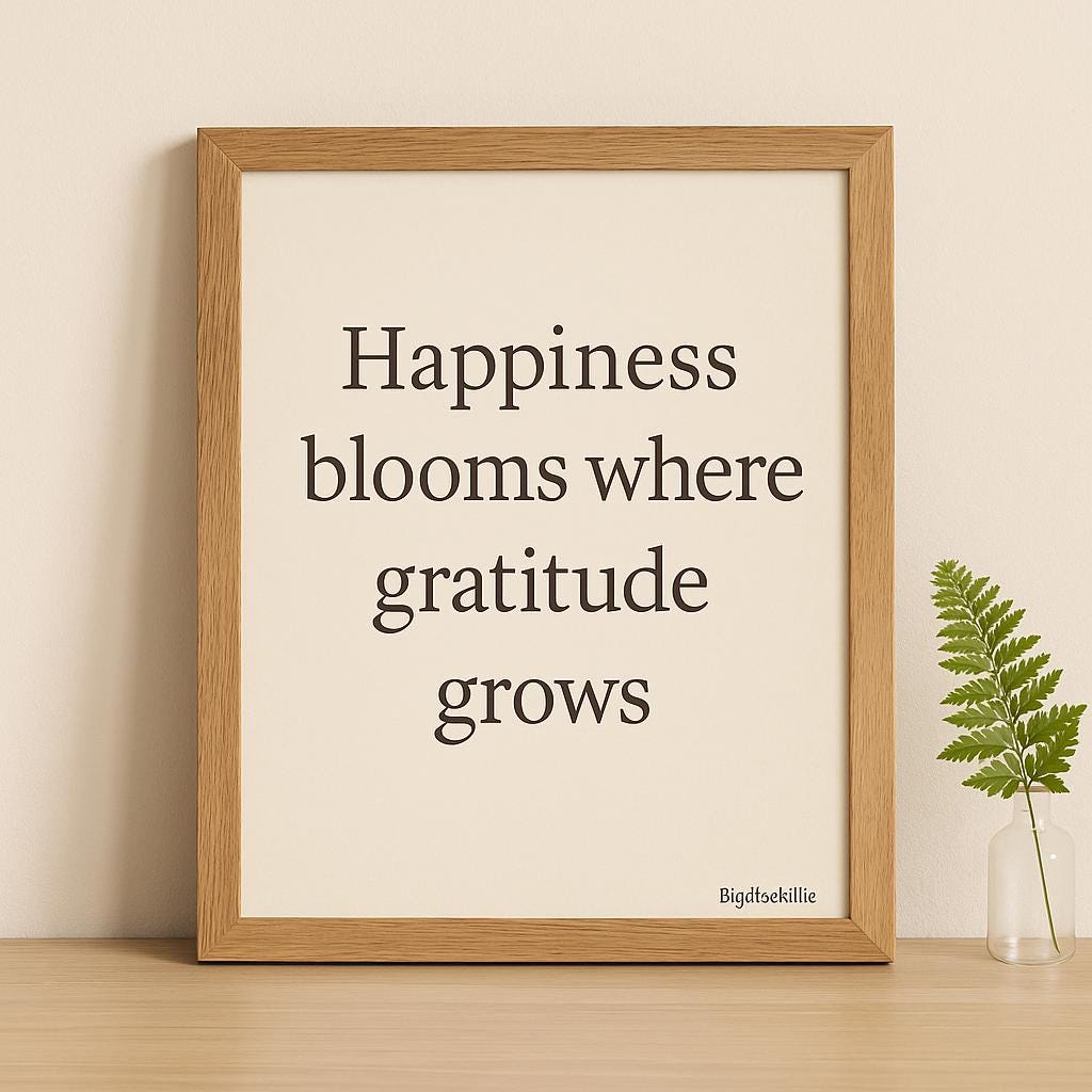 Happiness Blooms Where Gratitude Grows – Inspirational Quote Printable – Minimalist Wall Decor – Uplifting Digital Print – Bigdfaekillie
