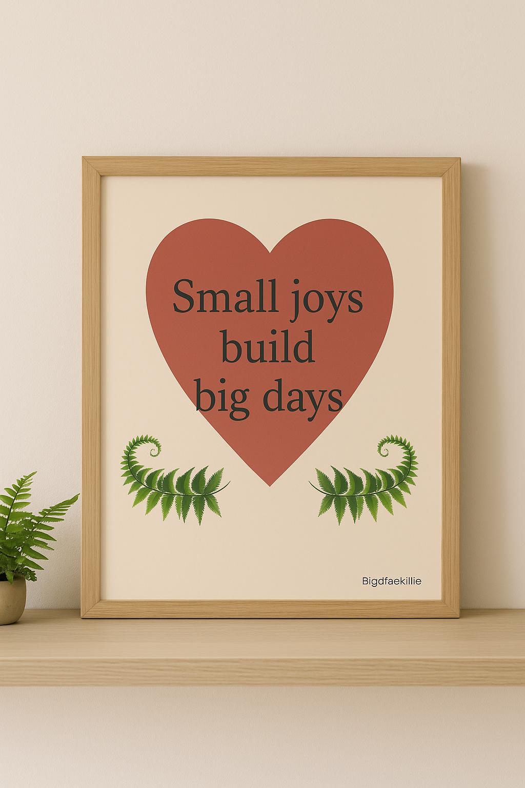 Small Joys Build Big Days – Heart and Fern Printable Wall Art – Motivational Quote Print – Positive Digital Download – Bigdfaekillie