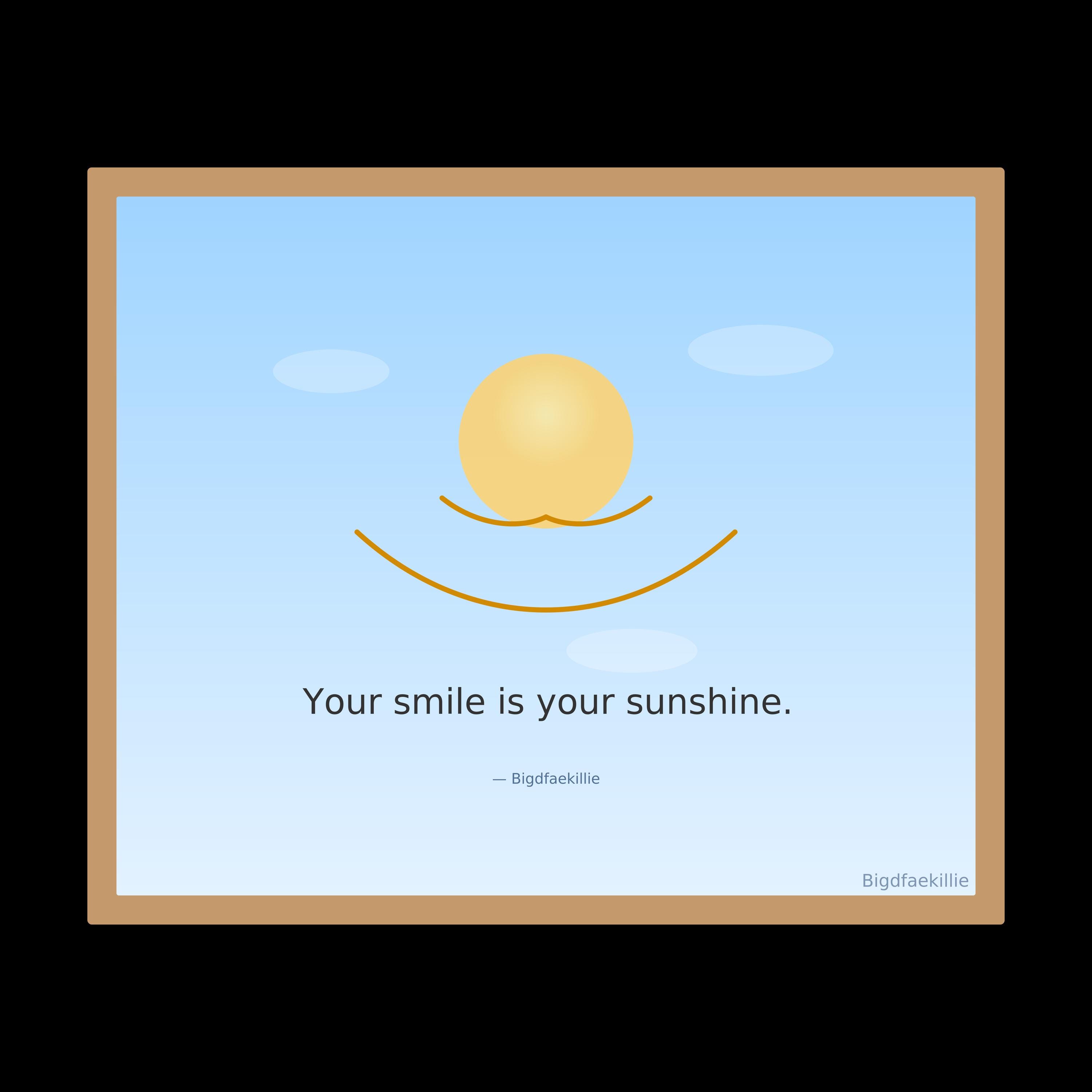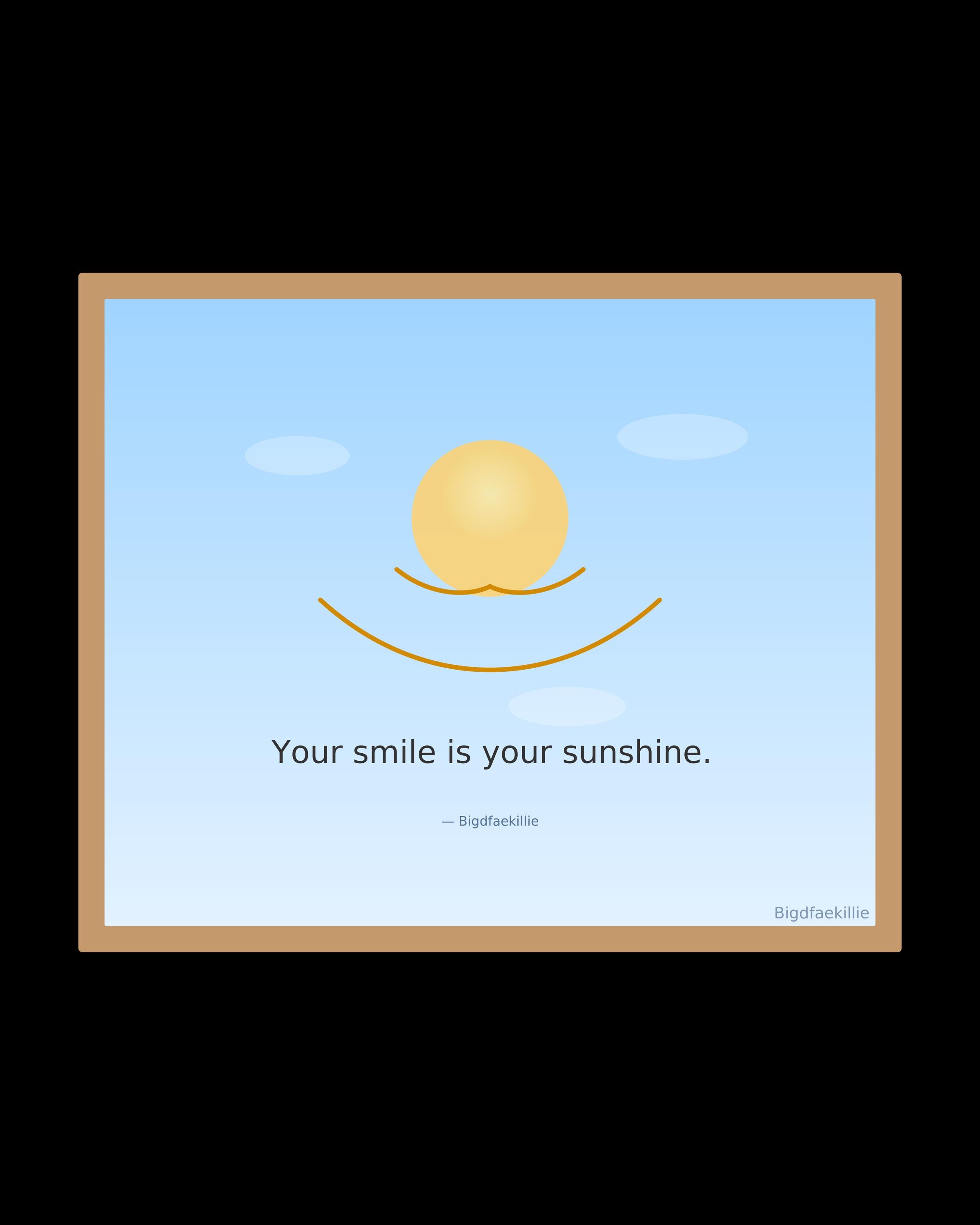 Set against a calming blue sky with a glowing gold smiley, this design radiates warmth, optimism, and positive energy.