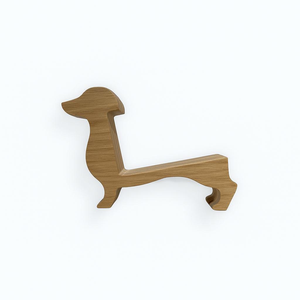 Each dachshund wine holder is individually handcrafted โ carefully cut, sanded, and finished to bring out the natural character of the wood. Unlike mass-produced pieces, every holder has its own unique grain and personality. Youโre not just buying a wine rack โ youโre supporting small-batch craftsmanship and gifting something thatโs truly one-of-a-kind.
