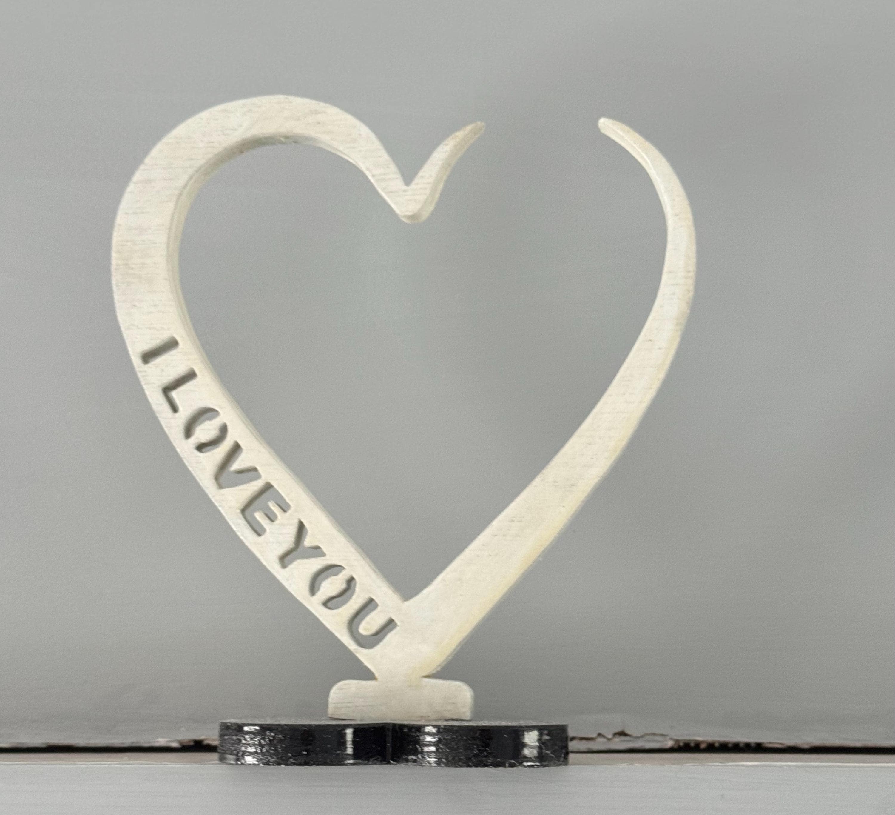 This beautiful freestanding wooden heart sculpture is a timeless way to say I love you. Carefully handcrafted, the flowing heart design is paired with the words “I Love You” cut directly into the wood, creating a striking and meaningful keepsake.