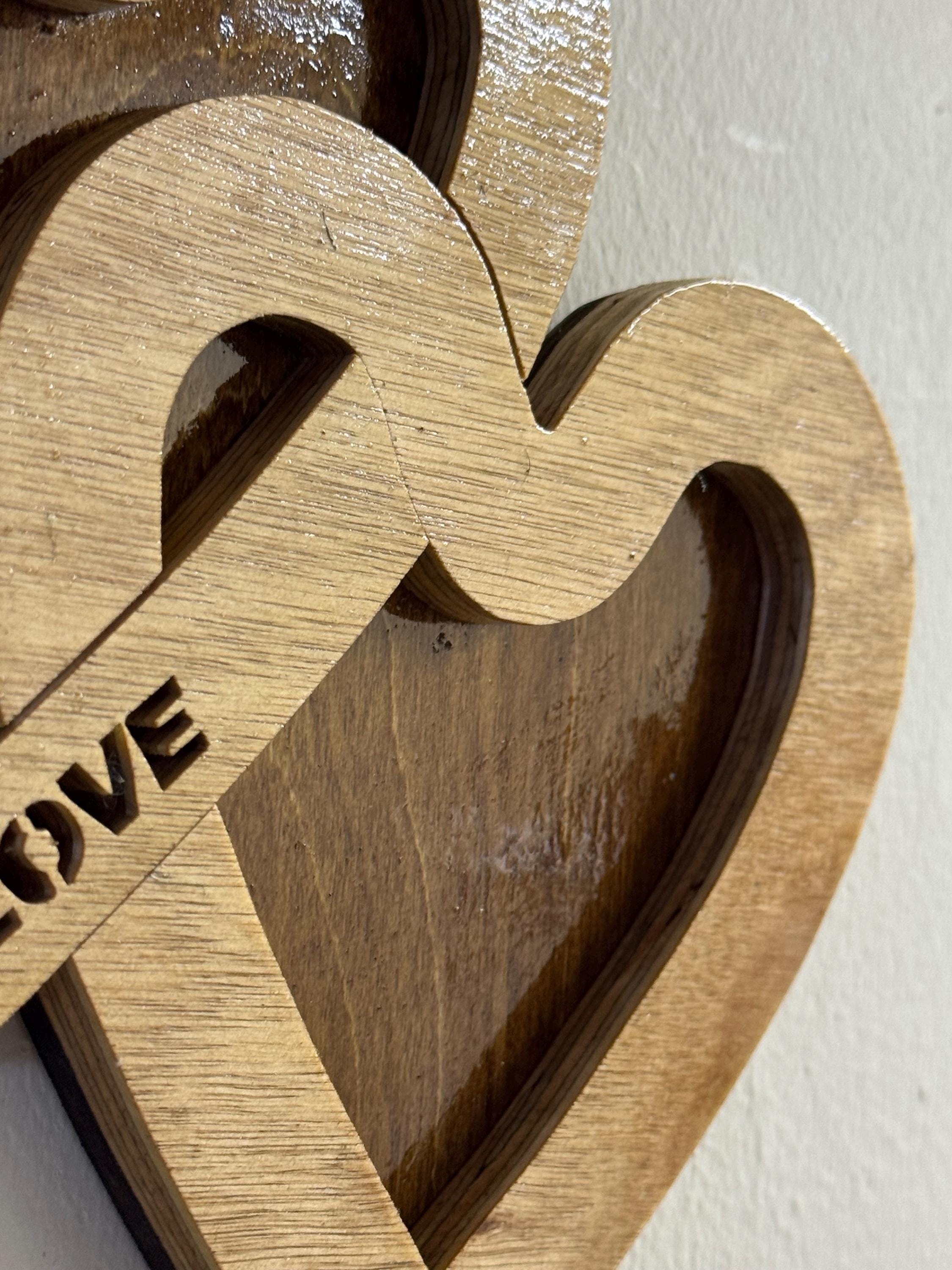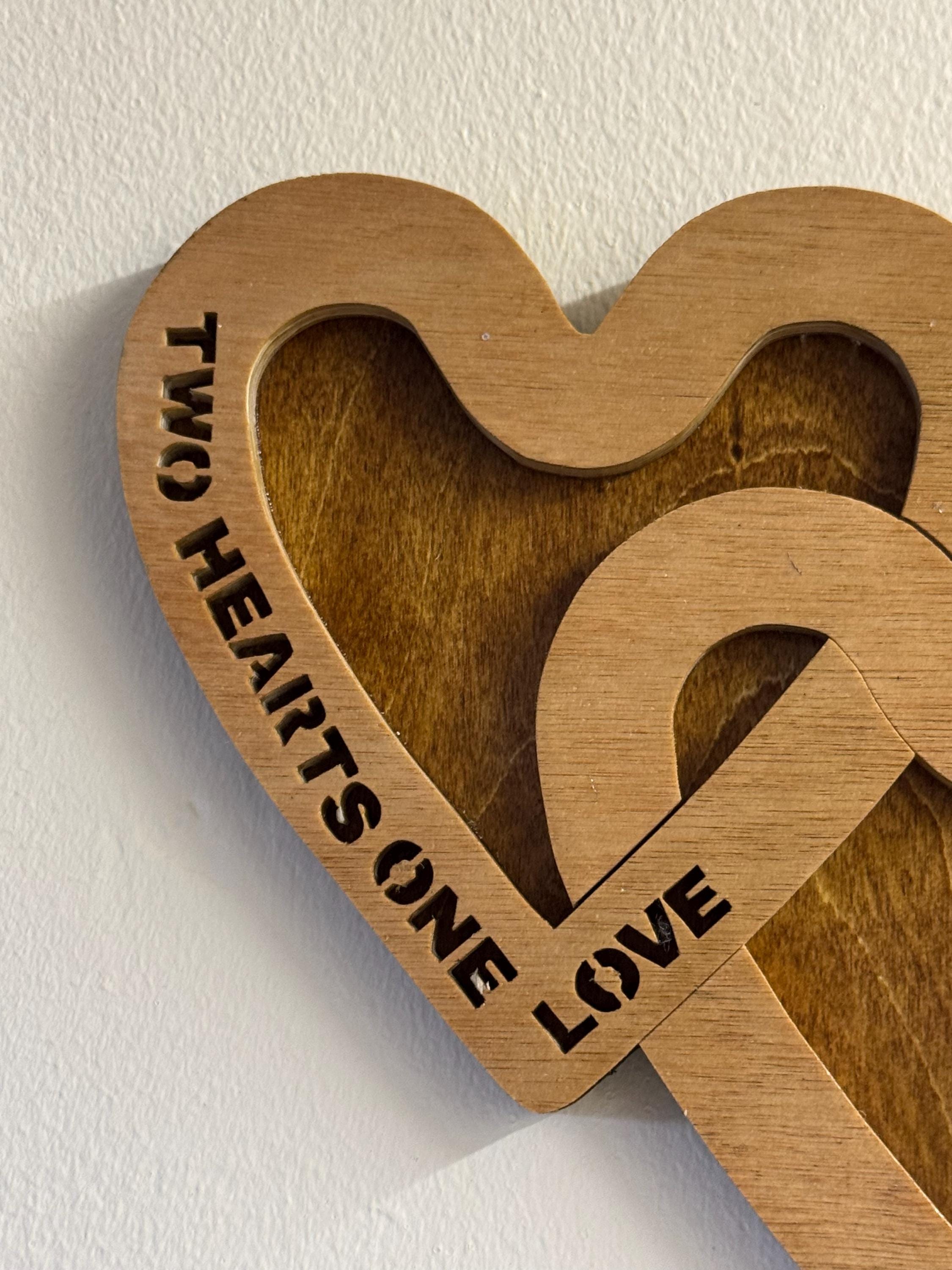 Two-Layer Wooden Interlocking Hearts Wall Hanging – Two Hearts One Love – Handmade Gift