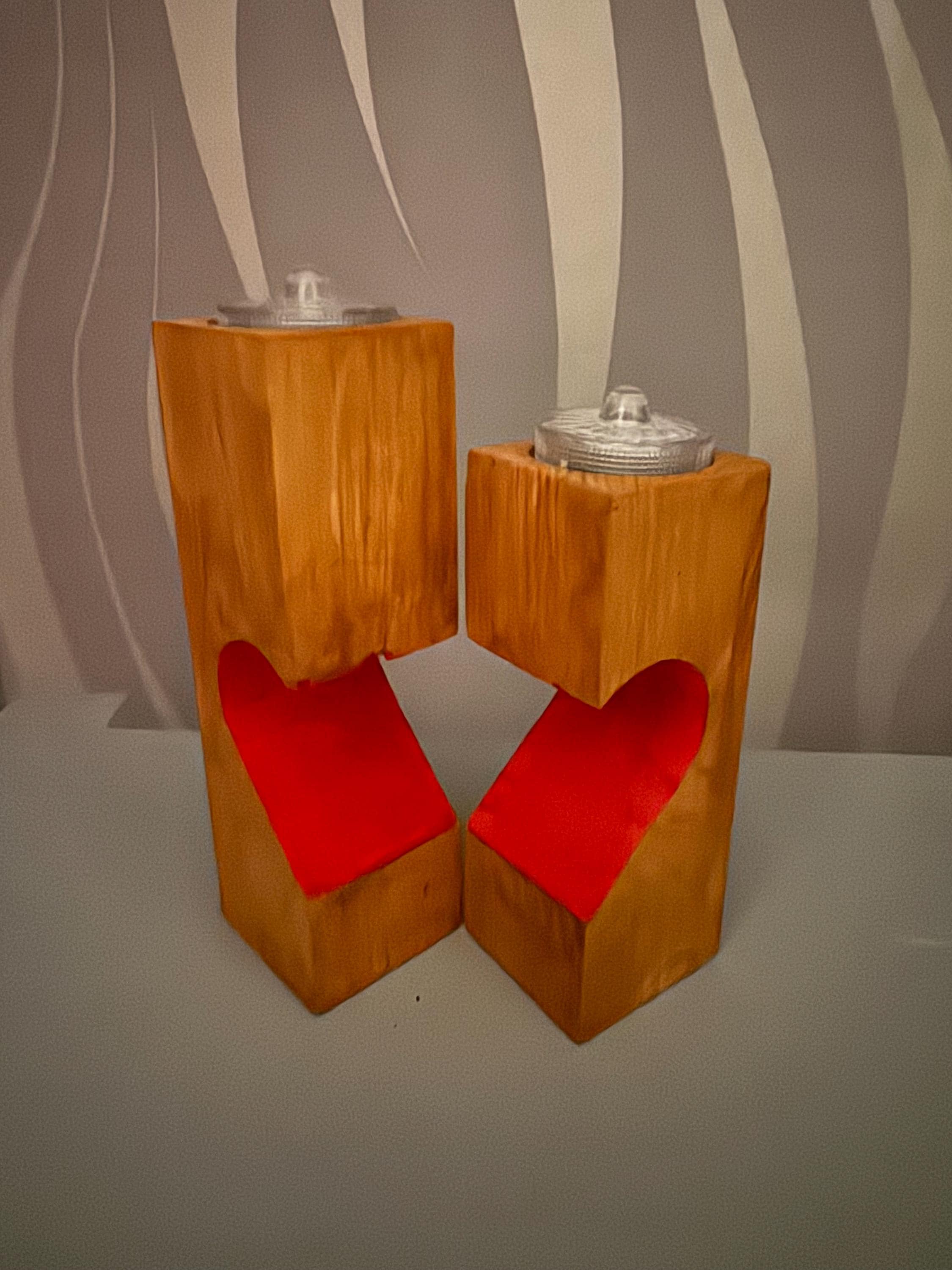 Split Heart Wooden Tealight Holder – Handmade Couples Candle Set
