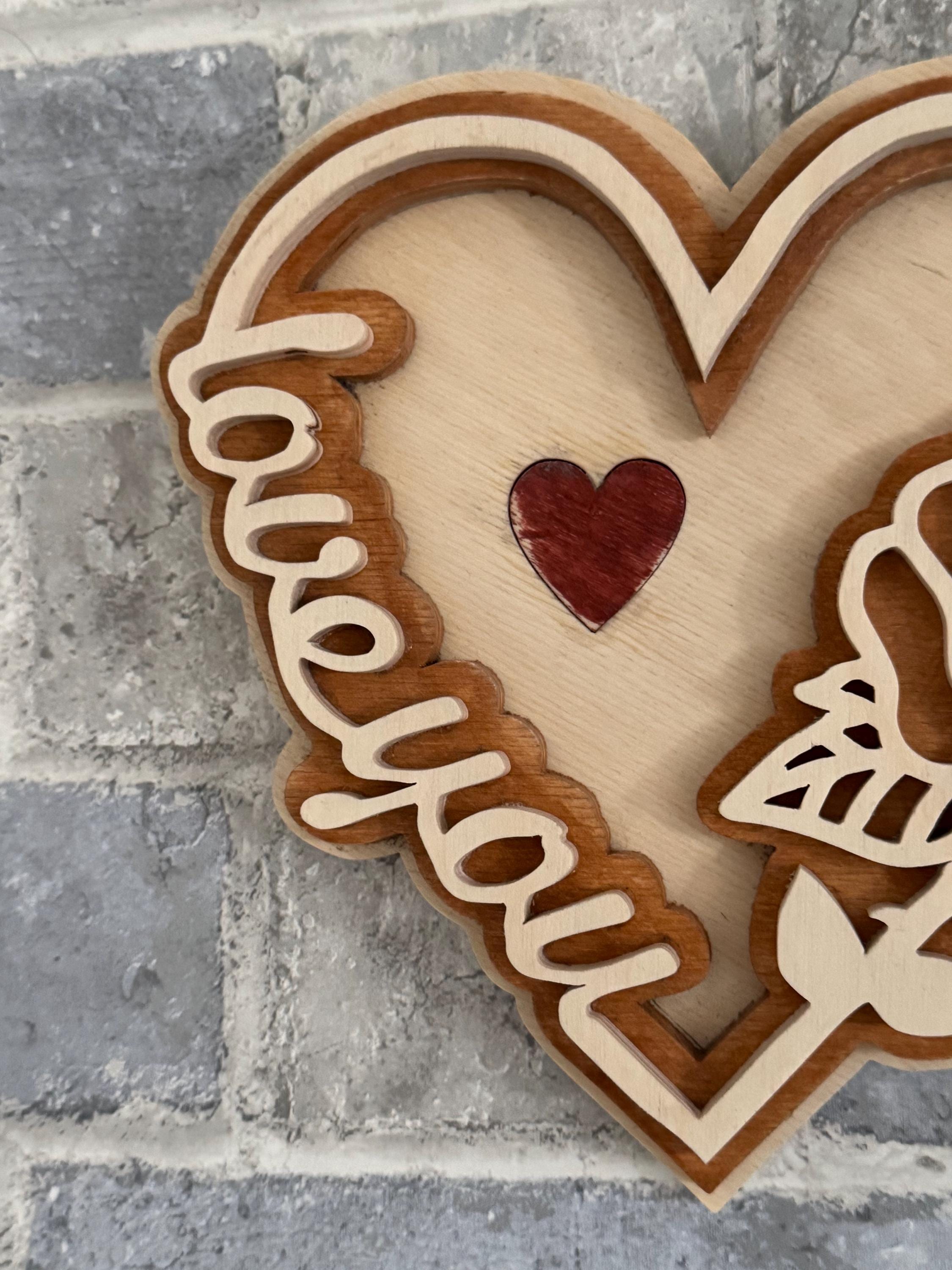 Handcrafted Layered Wooden “Love You” Heart Plaque