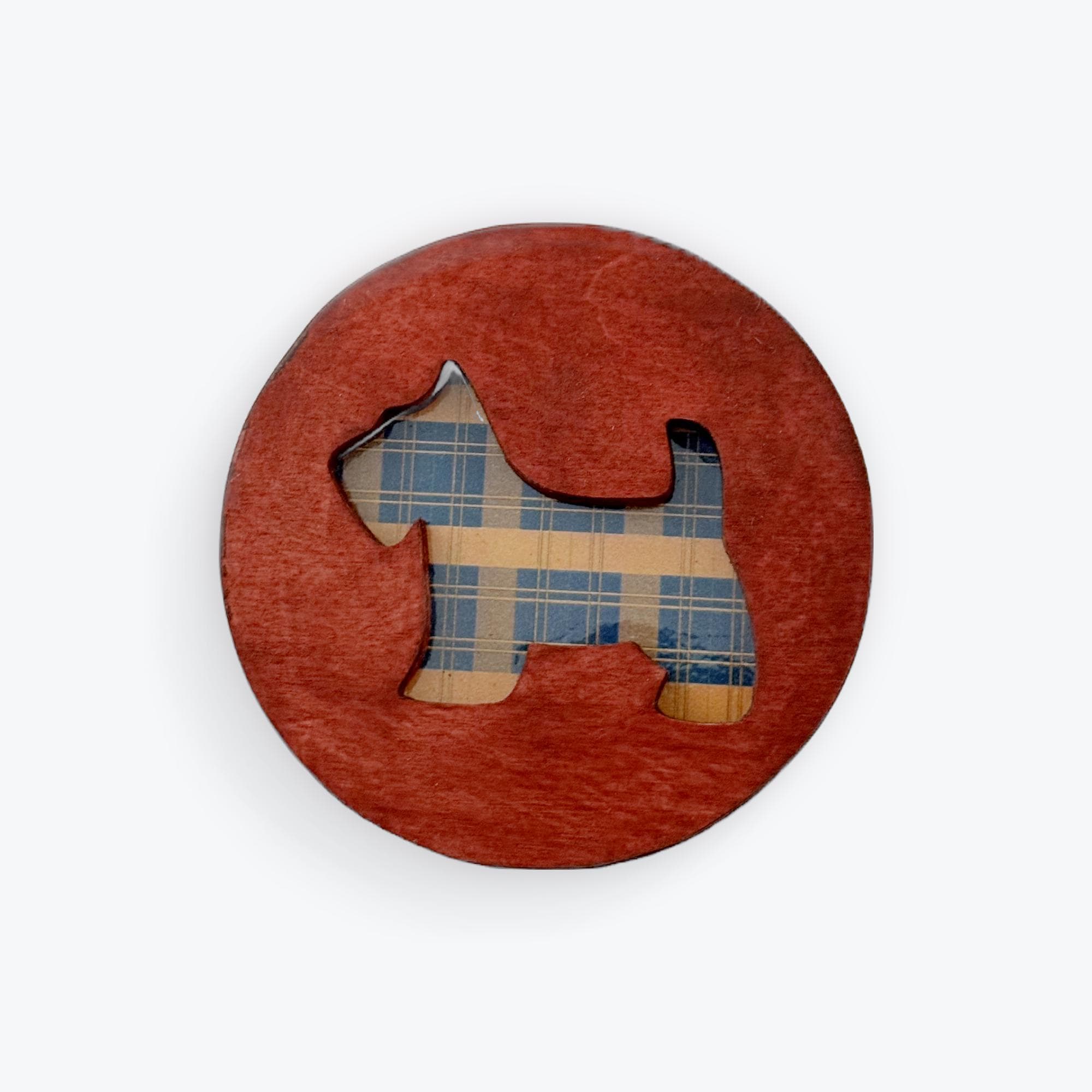 The centre layer showcases my own tartan design, sealed beneath the top layer for durability and a smooth finish. Ideal as a gift, keepsake, or small decorative accent with a distinctly Scottish feel.